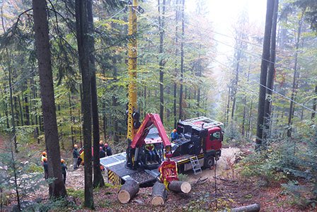 Damit Wälder ihre wertvollen Leistungen langfristig und nachhaltig erbringen können, müssen sie gepflegt werden. Für die dafür notwendigen Arbeiten setzen Forstdienste schwere Maschinen wie z.B. Tragschlepper ein. Für diese ist steiles Gelände aber kaum zugänglich. Und im Flachland ist man darauf bedacht, sensible Böden zu schonen.