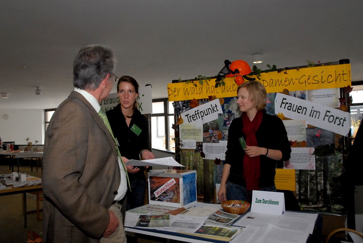 Als ein weiteres Ergebnis des Beraterinnen-Workshops organisierte der Lehrstuhl auf dem 4. Bayerischen Waldbesitzertag in Weihenstephan erstmals eine Anlaufstelle für Waldbesitzerinnen, den "Treffpunkt Frauen im Forst". Den Treffpunkt nahmen die anwesenden Waldbesitzerinnen, aber auch Beraterinnen rege an. Männer und Frauen, die sich am Stand über das Thema "Waldbesitzerinnen" informierten, reagierten gleichermaßen positiv, die Thematisierung von Waldbesitzerinnen in Bayern sei längst fällig gewesen.