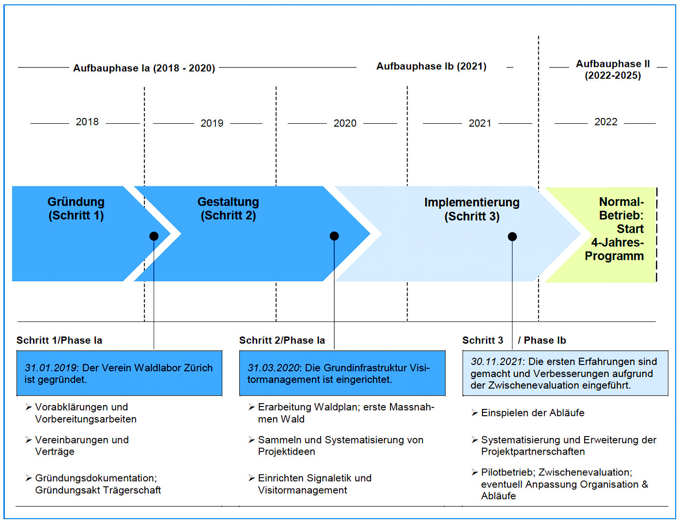 Von 2018 bis 2021 ist die Aufbauphase des Waldlabors, ab 2022 soll dann der Normalbetrieb starten.