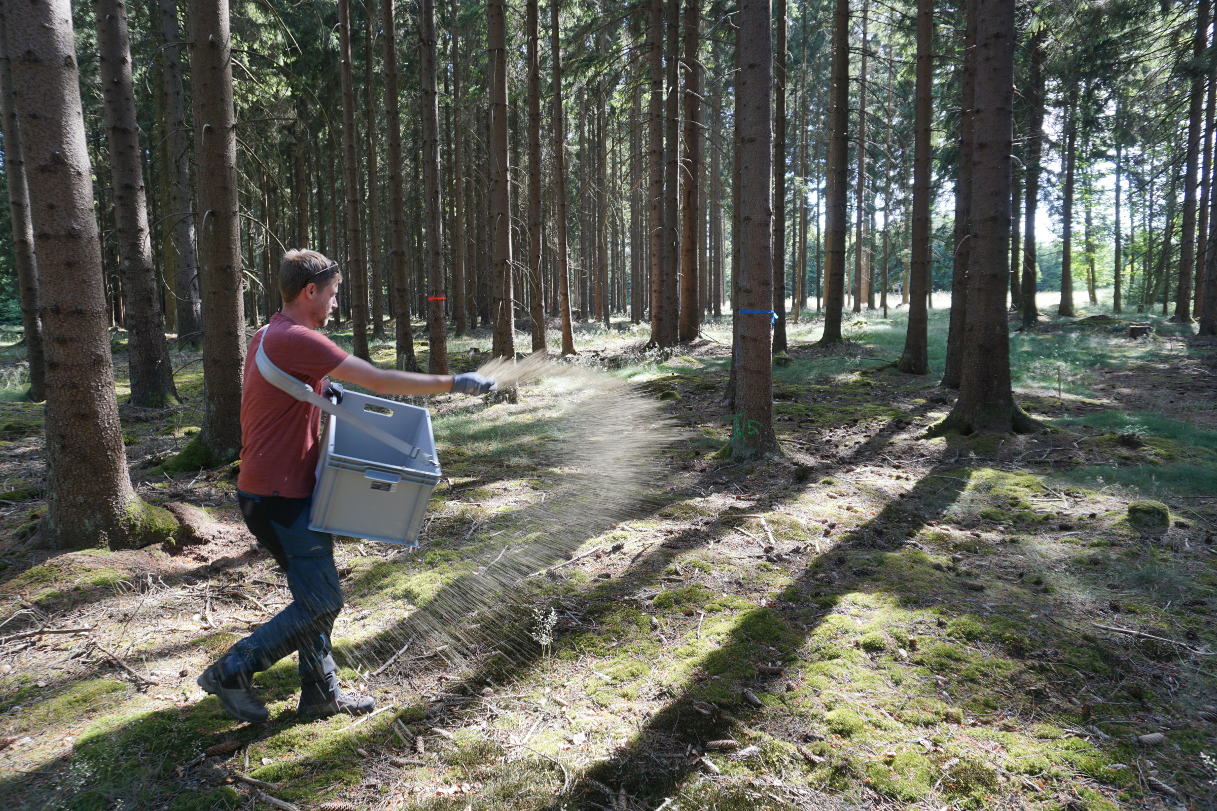 In einem Feldversuch im Rahmen des Projektes wurden die Auswirkungen der Ausbringung von Feinmaterial aus der Hackschnitzelaufbereitung auf den Ernährungszustand von Bäumen und den Boden analysiert. Dazu wurden Nadelspiegelwerte ermittelt und Bodenproben gewonnen, um Veränderungen direkt am Baum, aber auch im gesamten Ökosystem Wald zu erkennen. Als Untersuchungsgebiet wurden Waldbestände im Frankenwald (Landkreis Kronach) ausgewählt. Diese Standorte zählen zu den basenärmsten in Bayern. Besonders nährstoffarmen Standorten sollten bei der Bereitstellung von Holzhackschnitzeln möglichst wenig Nährstoffe entzogen werden, sofern dies aus Waldschutzgesichtspunkten möglich ist. In diesen Regionen könnte die Ausbringung von Holzhackschnitzelreststoffen eine Möglichkeit darstellen, den Nährstoffexport auszugleichen und somit eine Alternative zur klassischen Kalk-Düngung bieten.