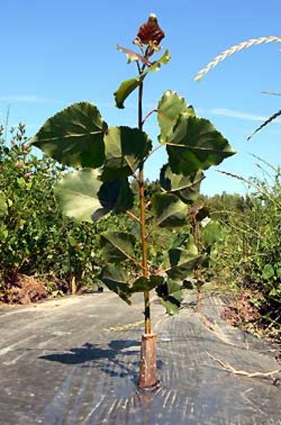 - Sorte: Der in vielen Untersuchungen festgestellte Einfluss der Sorte zeigte sich vor allem bei den verwendeten Pappelsorten. Auf der gut wasserversorgten VFL 1 lagen die Höhen- und Durchmesserzuwächse der Balsampappelsorte Muhle Larsen nach drei Jahren um bis zu 36 % über denen der Schwarzpappelsorten J 214 Casale, Jacometti 78 B und Büchig. Ebenfalls klare Unterschiede gab es auf dem schwierigen Standort der VFL 2, auf dem die Sorten AF2 und Max 5 bisher deutlich besser wuchsen als Muhle Larsen.