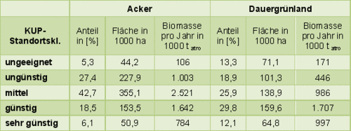 Tab. 1: Verteilung der KUP-Standortsklassen auf Acker- und Dauergrünlandflächen in Baden-Württemberg