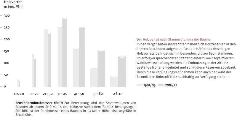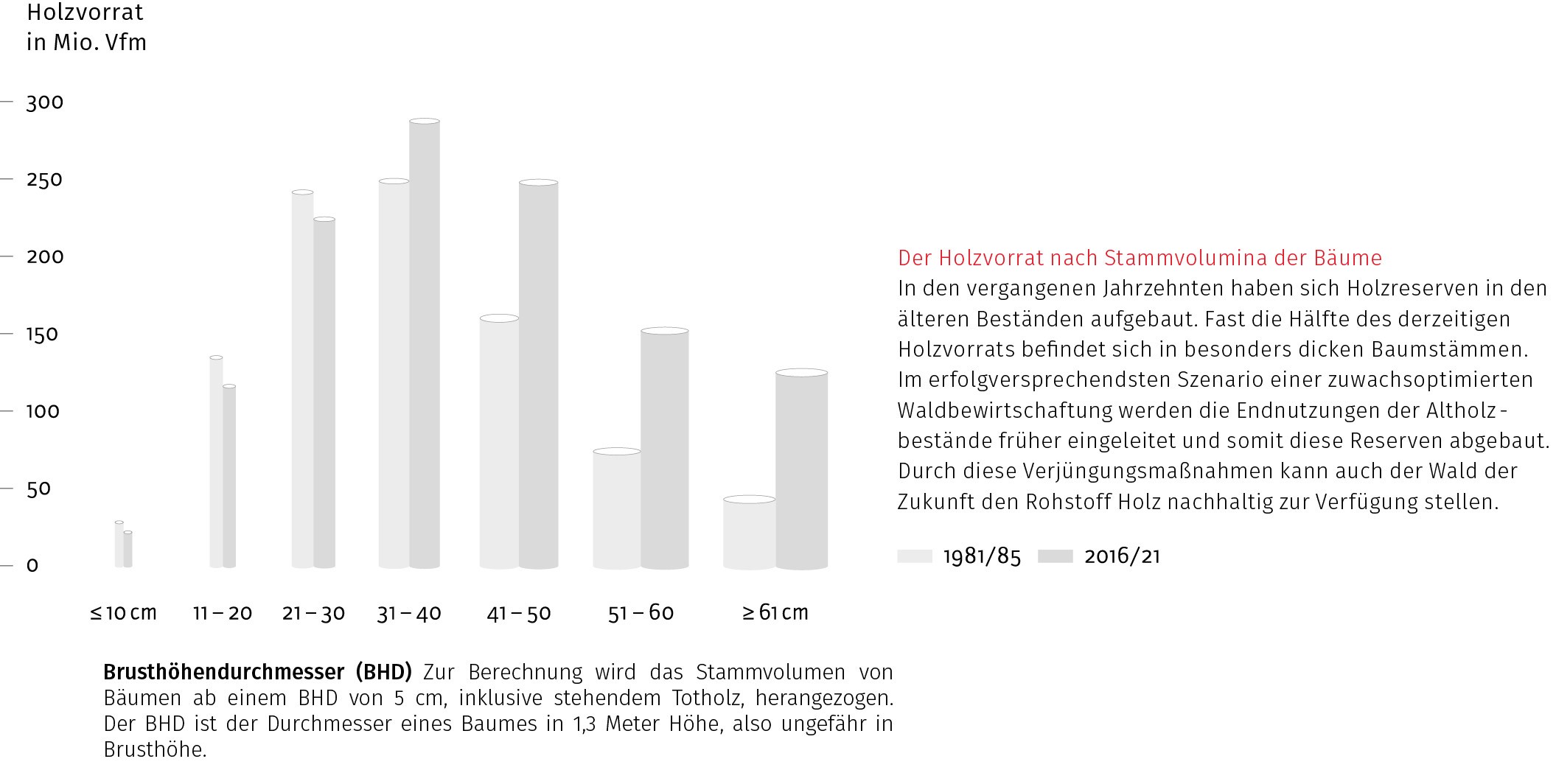 Dieser Entwicklung kann durch eine aktive Anpassung des Bewirtschaftungs- und Nutzungsverhaltens auf Basis forstwissenschaftlicher Erkenntnisse entgegengesteuert werden. Das dient nicht nur dem Vorratserhalt, sondern vor allem auch dem Erhalt der Ökosystemleistungen des Waldes und der Resilienz der Baumarten angesichts der sich verändernden Rahmenbedingungen wie größere Hitze und Trockenheit.