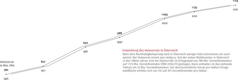 Generell muss der Wald immer vor Übernützung geschützt werden, weshalb in der Forstwirtschaft vor mehr als 300 Jahren, genauer gesagt 1713, das Prinzip der Nachhaltigkeit eingeführt wurde. Kein anderer relevanter Wirtschaftszweig hat sich über Jahrhunderte so vorausschauend verhalten. Ein Kriterium der nachhaltigen Waldbewirtschaftung ist es, nicht mehr Holz aus dem Wald zu entnehmen als nachwächst. Derzeit werden im österreichischen Wald nur 89 Prozent des Zuwachses geerntet.