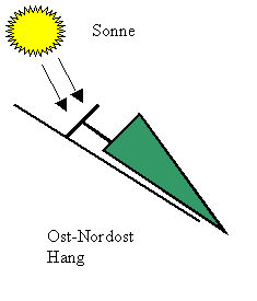 - Nach bisherigen Erfahrungen sind Bestände an Nord- oder Nordosthängen besser zur Lebendlagerung geeignet als Bestände an Süd- bzw. Südwest- oder Westhängen und Ebenen. Ergänzend muss jedoch nach neueren (aber nicht wissenschaftlich belegten) Erfahrungen hinzugefügt werden, dass bei hangabwärts geworfenen Fichtenbeständen an Nord‑/Osthängen ein häufigeres Befallsrisiko von Insekten bzw. ein häufigerer Qualitätsverlust des Holzes festgestellt wurde. Der Grund für dieses Phänomen ist anscheinend die Abtrocknung des Wurzeltellers, da die Unterseiten der Wurzelteller der starken Sonneneinstrahlung ausgesetzt sind.