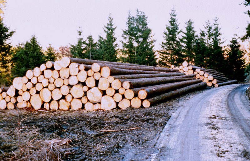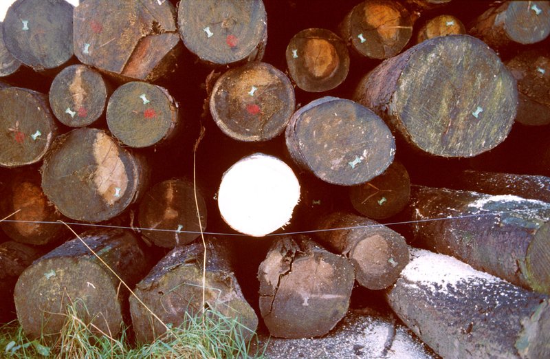 - rasche Aufeinanderfolge von Fällung, Entrindung und Poltern;