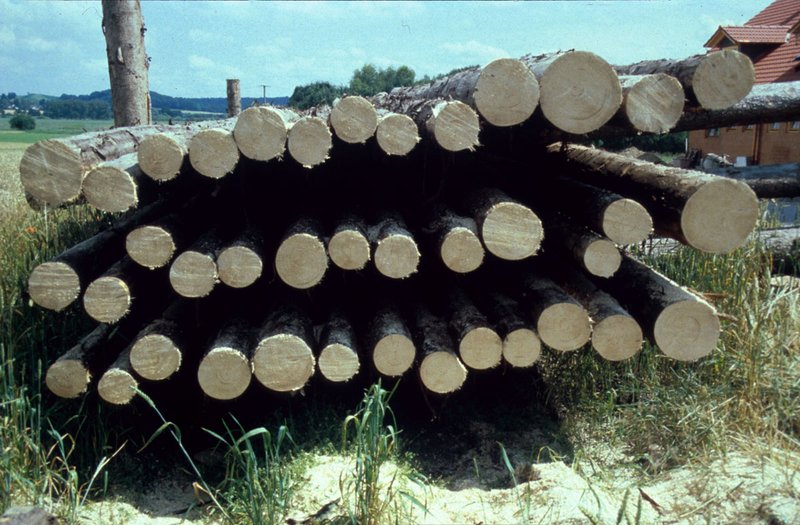 - Lagerung in und ohne Rinde möglich; Entrindung reduziert das Risiko von Hallimaschbefall bei Fichte erheblich;