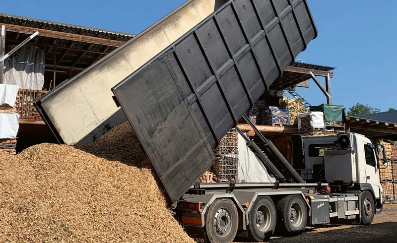 Abb. 1 – Abladen von Hackschnitzeln aus einem LKW-Container. Foto: Vivienne Schnorf