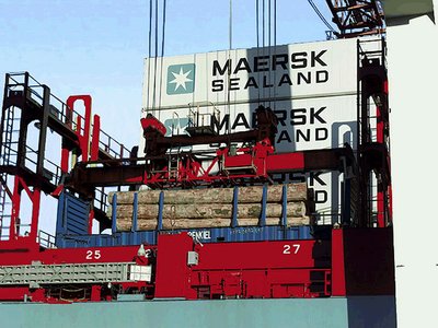 Abb. 1: Der globale Holzmarkt verlangt auch von der Forst- und Holzwirtschaft neue und flexible Transportlösungen. Das LogRac ist ein für den Seetransport standardisierter Flat-Container für Stammholz (Foto: Fa. Ahrenkiel).
