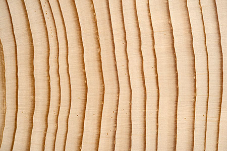 Schmalsplintiges. dekoratives Nadelholz mit rötlich brauner bis dunkelrot brauner Kernfärbung sowie ausgeprägtem Frühholz-Spätholz-Kontrast und damit deutlicher Jahrringstruktur.