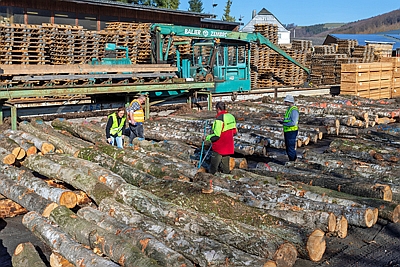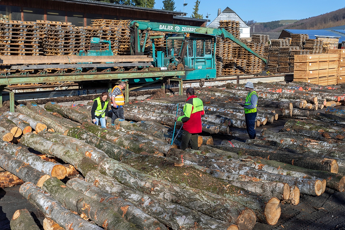 Das Team untersuchte unter anderem, wieviel für Bauprodukte verwertbares Schnittholz im Gegensatz zu den Sägenebenprodukten aus den entnommenen Stämmen mit Blick auf den jeweiligen Standort gewonnen werden kann.