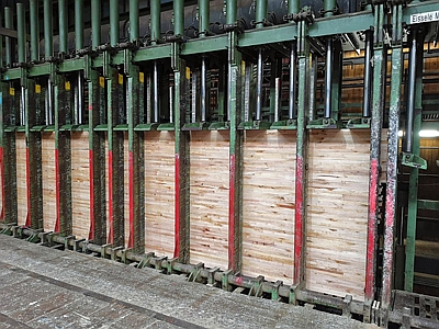 In der anschließenden Produktion des Birken-Brettschichtholzes (Birken-BSH) im industriellen Maßstab wurde an 659 Stück Birkenlamellen (Birkenbrettern) das dynamische Elastizitätsmodul maschinell mittels Viscan bestimmt und diese im Anschluss mit einem Goldeneyescanner der Firma Microtec gescannt.