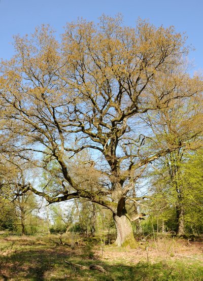 Ein typischer Hutewald besitzt eine sehr heterogene Altersstruktur, ebenso variieren kulturhistorische Merkmale je nach Region in ihrer Ausprägung und Häufigkeit. Etwa sind Niederwaldstrukturen in vielen dieser Wälder anzutreffen. Auch Kopfbäume, insbesondere Kopfhainbuchen, kommen häufig vor (Abb. 3). Diese wurden für die Gewinnung von Laubheu, Brennholz oder Flechtwerk genutzt. Eine gängige Praxis bestand darin, Bäume auf einer Höhe von zwei bis drei Metern zu köpfen, um die Entwicklung großer Kronen zu fördern. Ein weiterer verbreiteter Hutewaldtyp ist der Eichenpflanzwald mit einem Pflanzabstand von etwa 10 x 10 Metern. Dieser Typ ist besonders im Reinhardswald in Nordhessen sowie im Solling in Südniedersachsen zu finden. Pflanzwälder wurden ab dem ausgehenden 18. Jahrhundert angelegt, um die Hutewaldbeweidung mit der Holzproduktion zu verbinden. Sie hatten drei Vorteile: Zum einen ließen sie genug Licht für die Ausbildung einer weidetauglichen Krautschicht durch, die aufgrund des Abstands der Bäume ausgeprägten Baumkronen machten die Schweinemast durch reichlichen Samenfall weiterhin möglich und die Bäume standen immer noch dicht genug, um gradschaftiges Bauholz zu produzieren.