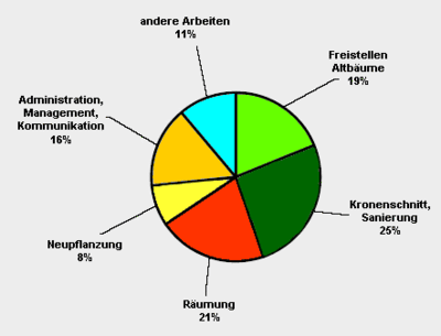 - Ein Grossteil der Projektkosten betraf die Ausführung der eigentlichen Restaurationsarbeiten (73 %). Der Anteil für die Querschnittsaufgaben Administration, Management und Kommunikation war mit rund 16 % relativ gering.