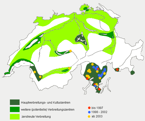 - Selvenrestaurationen erfolgten fast ausschliesslich auf der Alpensüdseite - im Tessin sowie in den Bündner Südtälern Misox und Bergell. Das erste Selvenrestaurationsprojekt wurde 1979 im Bergell gestartet. In den anderen Kastanienregionen hat die Zahl von Selvenrestaurationen vor allem seit 1998 stark zugenommen. Bereits sind auch erste Selvenrestaurationen oder -neubegründungen ausserhalb der Südschweiz zu verzeichnen.