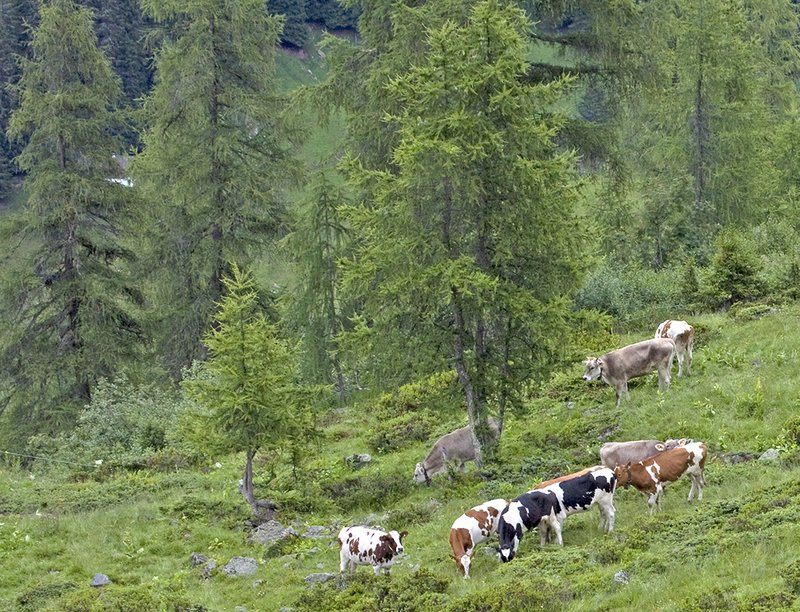 Dabei zeigte sich, dass der Anteil an beschädigten jungen Bäumen relativ gering war (9 % aller Bäume) und dass die Baumarten unterschiedlich stark betroffen waren. Die Lärche wurde nicht verbissen, die Vogelbeere dagegen stark. Eine kleinere Weidefläche, eine geringere Biomasse-Verfügbarkeit pro Hektar und ein höherer Fasergehalt (d. h. eine schlechtere Futterqualität) der Bodenvegetation führte zu häufigerem Verbiss der junge Bäume durch die Rinder. Bereits 1870 hatte man bemerkt, dass das Rindvieh den Jungwuchs in subalpinen Wäldern dann als Futter nutzt, wenn die Weide nicht die nötige Nahrung bietet.