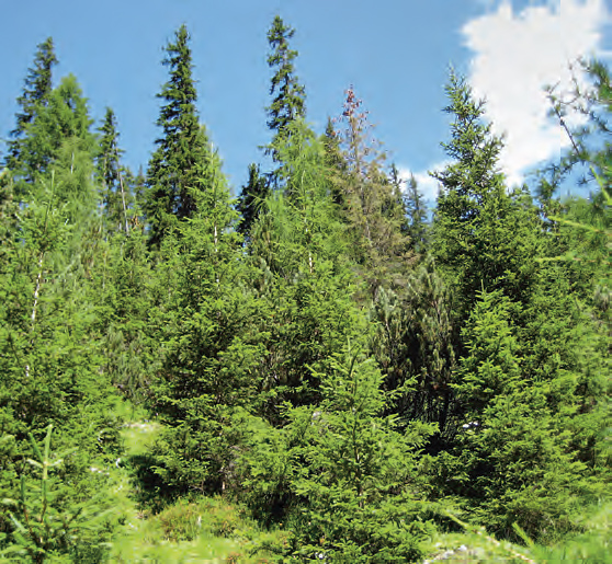 Wie erwartet waren die beweideten Wälder weniger dicht als die unbeweideten (883 gegenüber 1073 Bäume ab 3 m Höhe pro Hektar) und wiesen einen signifikant höheren Anteil an Lärchen auf (16,8 % gegenüber 2,5 %). Die jungen Fichten auf beweideten Flächen waren schneller gewachsen als auf den unbeweideten Flächen und auch in dieser Altersstufe war der Lärchenanteil auf beweideten Flächen signifikant höher (8,3% gegenüber 3%). Beide Resultate widerspiegeln die offenere Struktur und den höheren Lichtdurchlass. In den untersuchten beweideten Wäldern gab es weniger Individuen in der obersten Baumschicht (Bäume > 25 m), diese waren jedoch bedeutend älter als in den unbeweideten Wäldern.