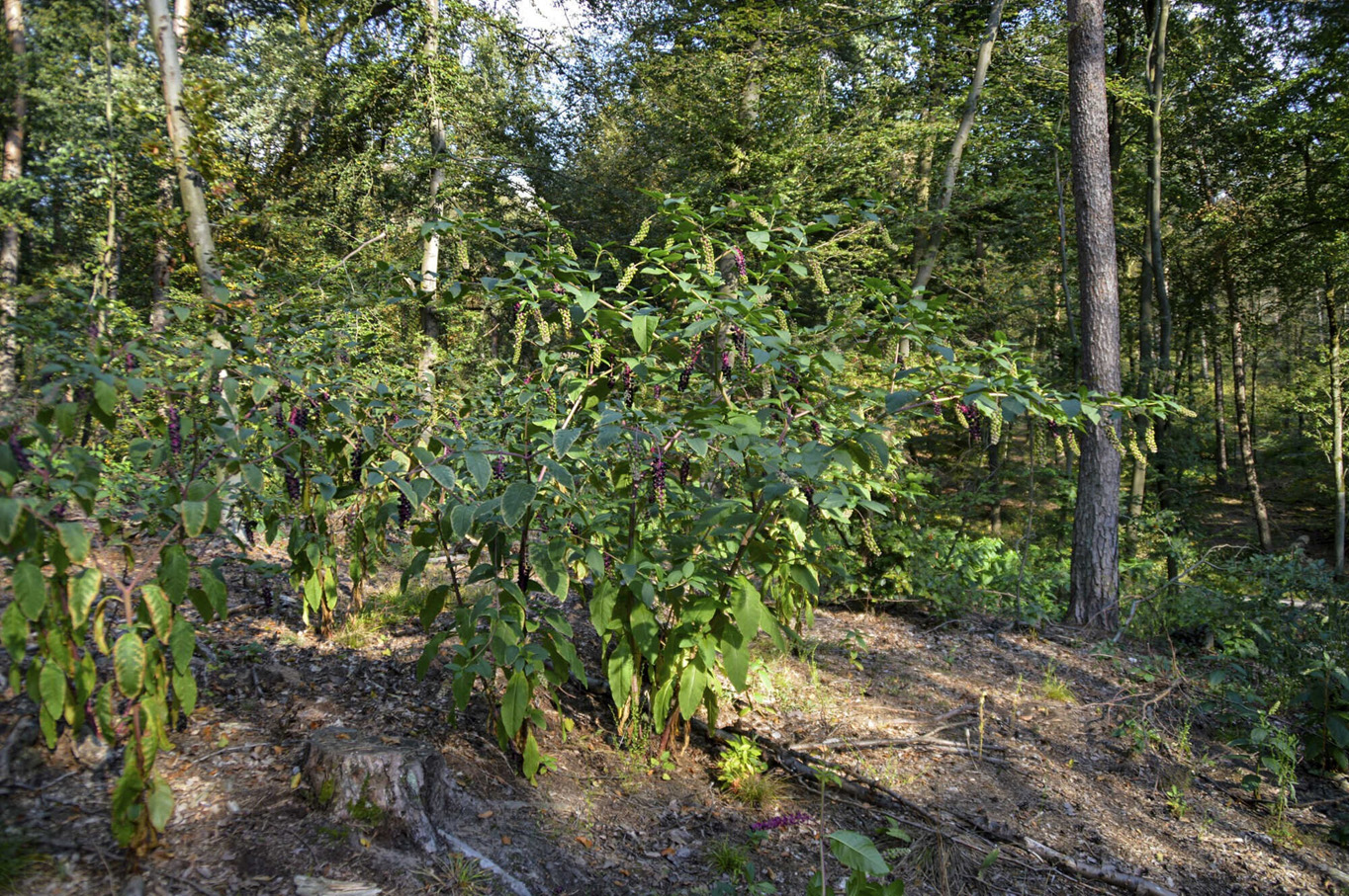 Die Amerikanische Kermesbeere wurde im frühen 17. Jahrhundert aus Nordamerika in Portugal, Spanien und Italien als Färbstoff für Rotwein und in Frankreich, England und Deutschland als Zierpflanze in Gärten eingeführt. Inzwischen ist sie in wärmeren Gebieten stellenweise verwildert. Unter anderem in der Schwetzinger Hardt bei Heidelberg breitet sie sich rapide aus. Sie ist eine anspruchslose, ausdauernde krautige Pflanze, die jährlich neu aus einer rübenförmigen Pfahlwurzel austreibt. Sie wird bis drei Meter hoch und kann mehr als 40 Jahre alt werden. Die Samenausbreitung erfolgt vornehmlich durch Vögel, vegetative Vermehrung ist nicht bekannt. Die Samen überdauern ohne Verlust der Keimfähigkeit mindestens 40 Jahre im Boden. Nach der Keimung kann P. americana in kurzer Zeit enorme Biomasse aufbauen. Über mehrere Jahre entstehen so dichte Reinbestände, in denen durch Licht-, Wasser- und Nährstoffkonkurrenz Verdrängungseffekte gegenüber der heimischen Flora auftreten (Abb. 1). Es gibt Hinweise auf die Hemmung des Wachstums anderer Pflanzen durch Phenol-Abgabe (Allelopathie).