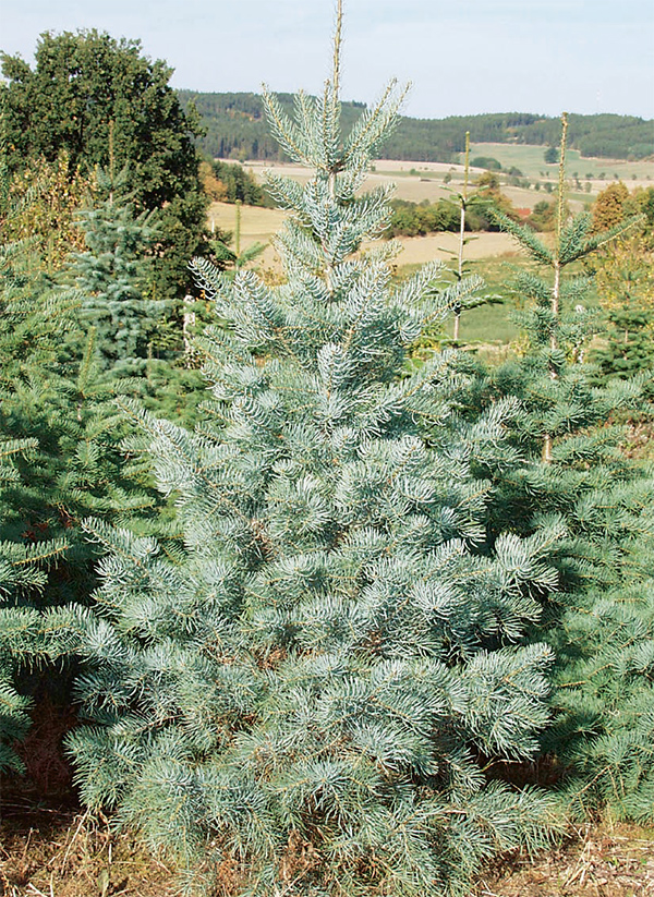 Eine schöne blaunadelige Tannenart mit schlanker Wuchsform und besonders guter Nadelhaltbarkeit. Häufig auftretende kleine Formfehler wie Zwiesel oder Steiläste können mit einfachen Korrekturschnitten beseitigt werden. Bei längeren Nässeperioden und auf zu feuchten Standorten kann es Probleme mit Wurzelpilzen und Nadelvergilbungen geben. Früher Austrieb.