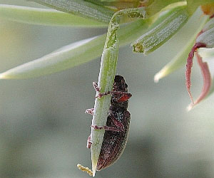 Abb. 2: Grünrüssler frisst an einer Blaufichtennadel.