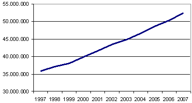 In der Berechnung wurden die Durchschnittspreise der ARGE Niederösterreichische Christbaumproduzenten für 2007 herangezogen und bis 1997 um die jährliche Inflation verringert (Statistik Austria, 2008). Der Wert der verkauften Bäume steigerte sich kontinuierlich von 1997 bis 2007 von über 35 Millionen Euro auf fast 55 Millionen Euro. Dies ist vor allem auf die steigende Produktion und auf die sinkenden Importe bei gleichzeitiger Absatzsteigerung zurückzuführen.