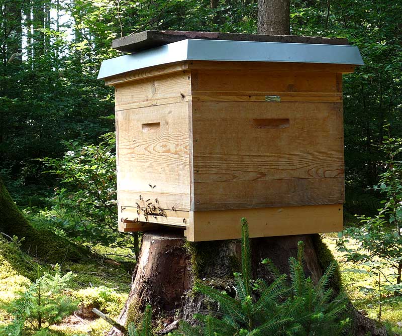 Abb. 3: Damit Bienen das Nahrungsangebot im Wald effektiv nutzen können, sind die Bienenvölker möglichst unmittelbar im Wald aufzustellen. Die Einwilligung des Waldbesitzers ist jedoch notwendig (Foto: T. Kudernatsch).