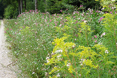 Abb. 1: Auf gehölzfreien Seitenstreifen entlang der Wege kann sich eine für Bienen attraktive Vegetation entwickeln (Foto: T. Kudernatsch).