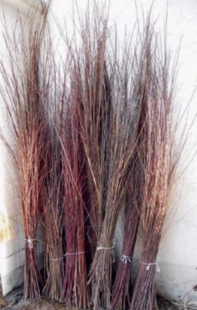 Abb. 6. Frisch geerntete Flechtruten - gebündelt zum Trocknen. Foto: Kirstin Stroebel