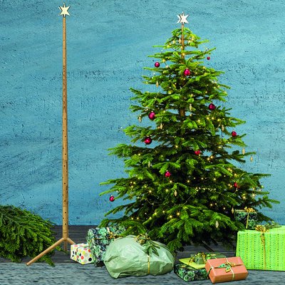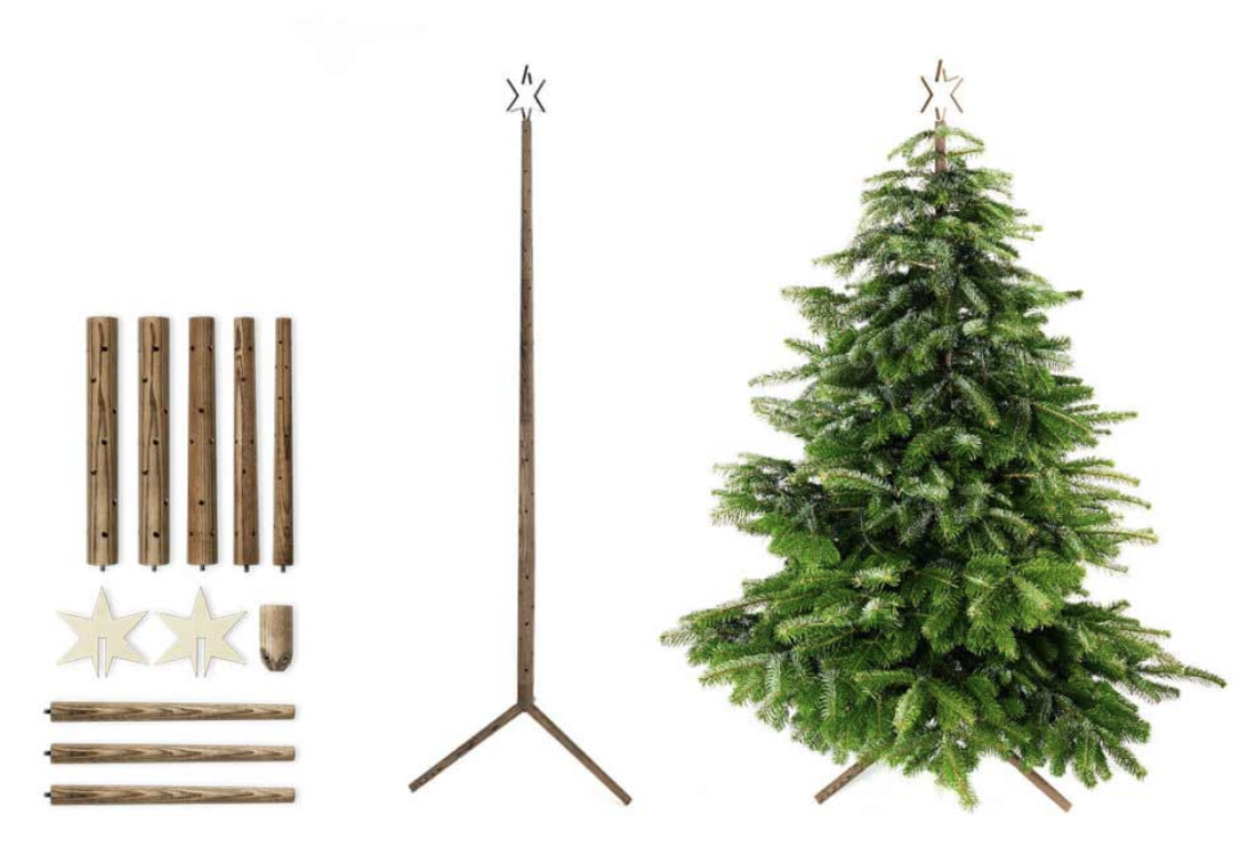 Nachhaltig, langlebig, leichter Transport, individuell gestaltbar: Ein Beispiel ist hier der "Keinachtsbaum", ein modularer, handgearbeiteter Ständer für Tannenzweige aus nachhaltig angebautem Eschenholz, der in jeden handelsüblichen Weihnachtsbaumständer passt und dessen Grösse variabel ist. Der Eschenstamm wird in mehreren kleinen Manufakturen und einer Werkstatt für Menschen mit Behinderung in Handarbeit gefertigt. Die Idee hinter dem Keinachtsbaum ist es, den Bäumen nur einzelne Zweige zu entnehmen anstatt sie komplett zu fällen, was zu 100% nachhaltig ist. Diese Zweige nennen sich Schnittgrün und man bekommt sie zum Beispiel bei den lokalen Weihnachtsbaumverkäufern, Gärtnereien oder im Forstamt.