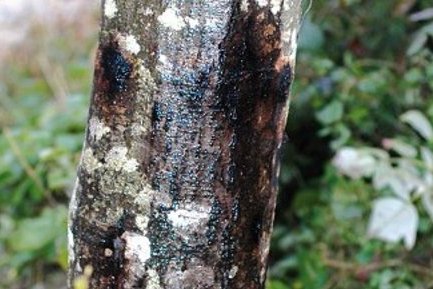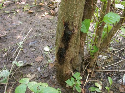 Abb. 3: Gepflanzte Erle mit Phytophthora-Wurzelfäule (Phytophthora x alni)