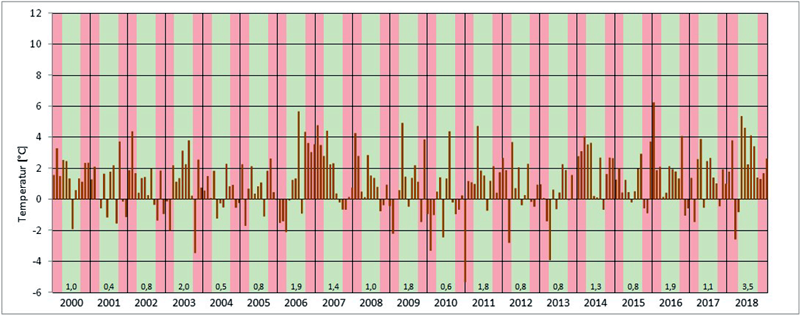 Lufttemperatur und Niederschlag in der Zeit von 2000 bis 2018