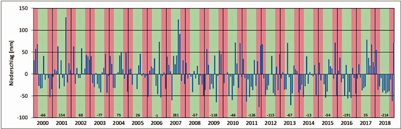 Abb. 7: Abweichung der Niederschläge vom Monatsmittel der Periode 1961-1990