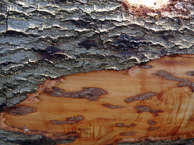 Abb. 2: Buche mit Schleimfluss und Fraßgängen. Foto: N. Asche