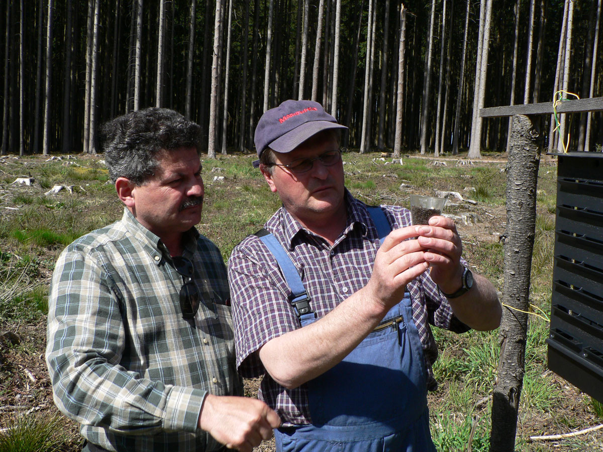 AP 1 Überwachungssysteme und Informationsplattform: Im AP 1 werden effiziente Überwachungssysteme für relevante Forstschädlinge und ein zeitnaher Informationstransfer über die Gefährdungssituationen an alle Waldbesitzer entwickelt. Dadurch wird ein kontinuierlicher Überblick über die aktuelle Gefährdungssituation, eine frühzeitige Schadensprognose und eine räumliche Eingrenzung der Gefährdungsgebiete ermöglicht. Das schafft einen zeitlichen Vorlauf für gezielte und situationsangepasste Gegenmaßnahmen. Die dabei entstehenden Zeitreihen lassen die Anpassungsdynamik der einzelnen Schadorganismen erkennen und liefern Hinweise für mittel- und längerfristige waldbauliche Maßnahmen. Die Informationen sollen die Waldbesitzer über eine Internet-gestützte Plattform erreichen.