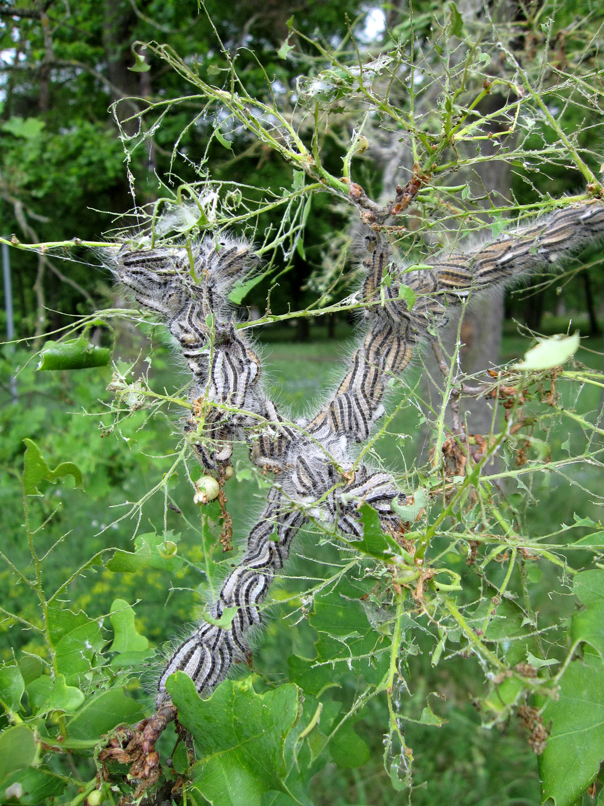 In den vergangenen Jahren etablierte sich in Franken der Eichenprozessionsspinner mit dauerhaft erhöhten Populationsdichten. Er erweitert sein Verbreitungsgebiet beträchtlich. Erfahrungen über Massenwechsel, Schadwirkung und Verbreitung fehlen in Bayern noch. Dort treten auch Schwammspinner, Eichenwickler und Frostspanner auf, deren Auswirkungen auf die Eichenwälder im Klimawandel, insbesondere beim Kombinationsfraß, bewertet werden müssen. Entsprechendes gilt auch für die Eulenspinnerarten und den Goldafter, die bisher allerdings nur lokal auftraten.