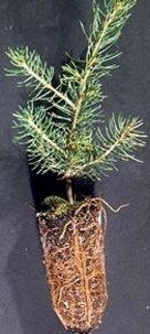 Lochpflanzmethoden mit wurzelnackten Pflanzen, aber auch mit Topfpflanzen sind für das empfindliche Wurzelsystem der Douglasie sicherlich besser geeignet. Allerdings sollte darauf geachtet werden, dass das Spross/ Wurzelverhältnis stimmt und bei Topfpflanzen keine Wurzeln entlang der Topfwände wandern (Blumentopfeffekt, Abbildung 2). Derartig deformierte Wurzeln wachsen auch nach Jahren nicht aus den "Blumentöpfen" heraus. Wenn die gepflanzten Bäume nicht innerhalb von Jahren an Unterversorgung absterben, wirft sie der nächste stärkere Wind.