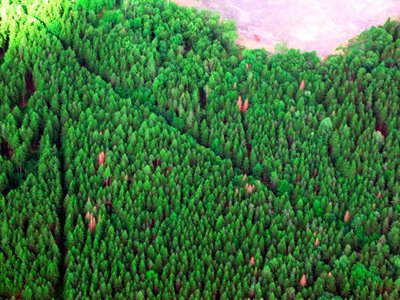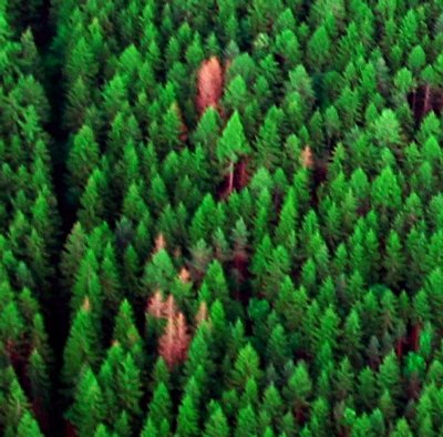Um sich einen besseren Überblick über die Situation zu verschaffen und die betroffenen Revierleiter bei der Käfersuche zu unterstützen, veranlasste das Forstamt Ende Juni den ersten Rundflug über den Staatswald.