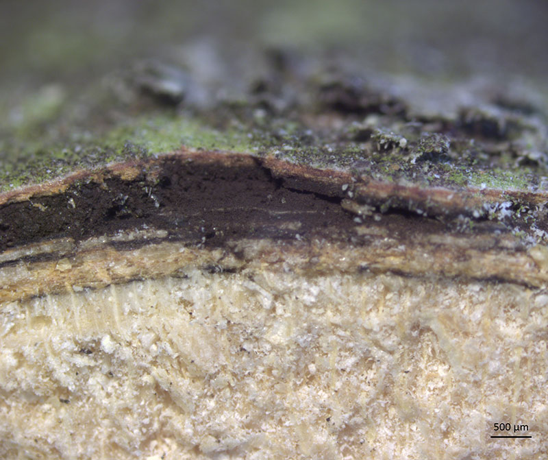 Abb. 2: Sporenschicht der Ahorn-Rußrindenkrankheit