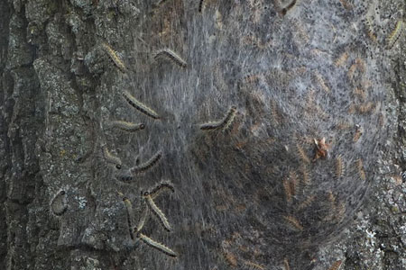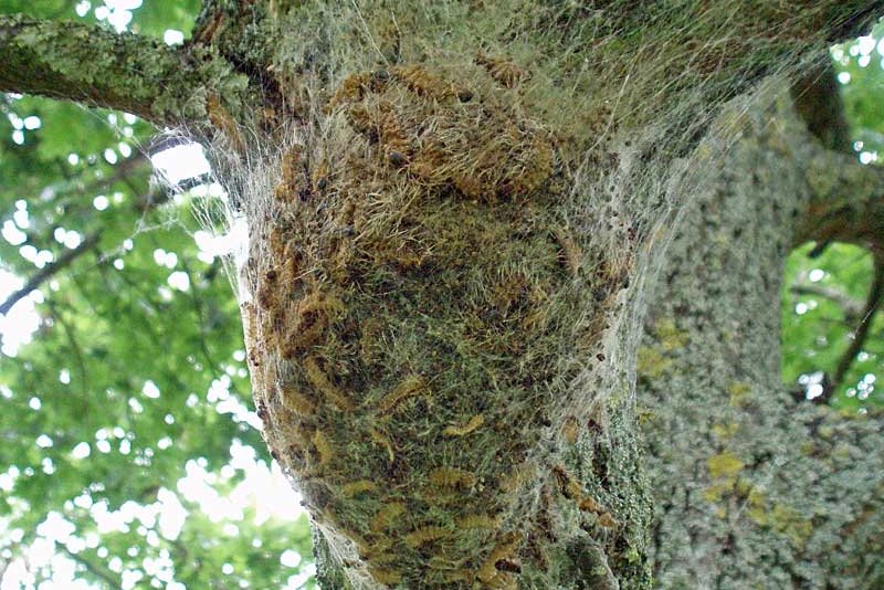 Denn die Aktion gilt den Raupen des Eichenprozessionsspinners und den behaarten Hüllen, die die Raupen bei der Häutung zurückgelassenen haben.