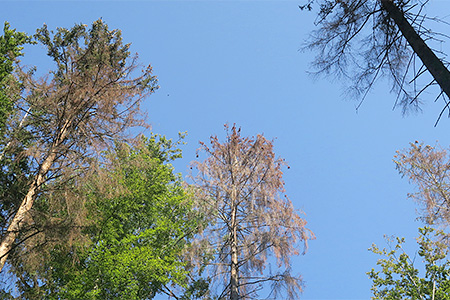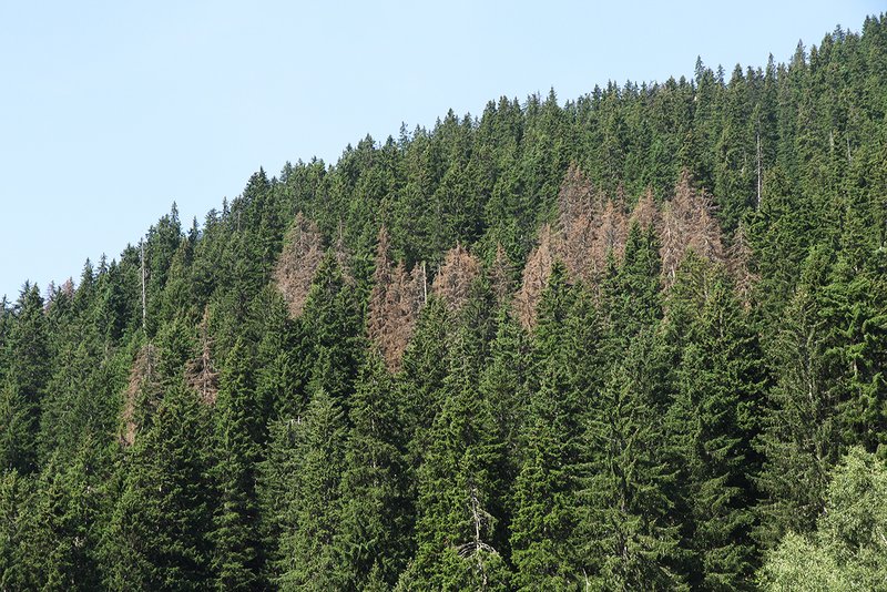 Höhere Temperaturen sind häufig auch mit erhöhter Trockenheit gekoppelt. Dies bedeutet für die Wirtspflanze Fichte, dass während heisser Trockenperioden der Wasserbedarf für die Transpiration erhöht ist bei gleichzeitig verringerter Wasserverfügbarkeit. Dies führt zu einem Trockenstress, der die Widerstandskraft der Fichte herabsetzt.