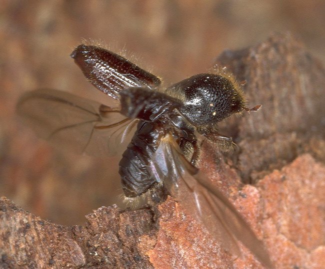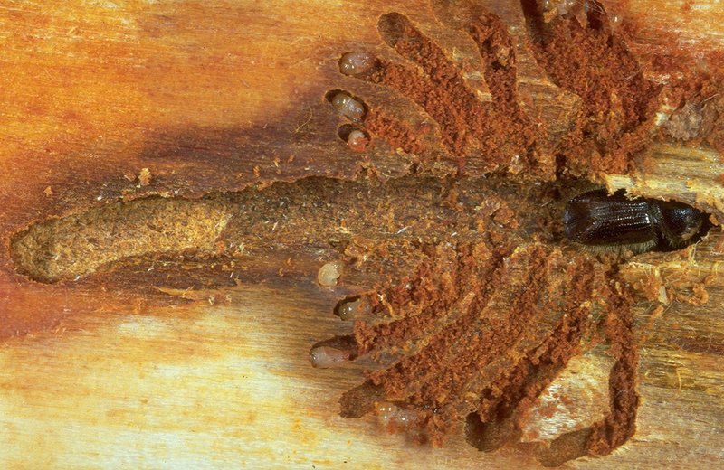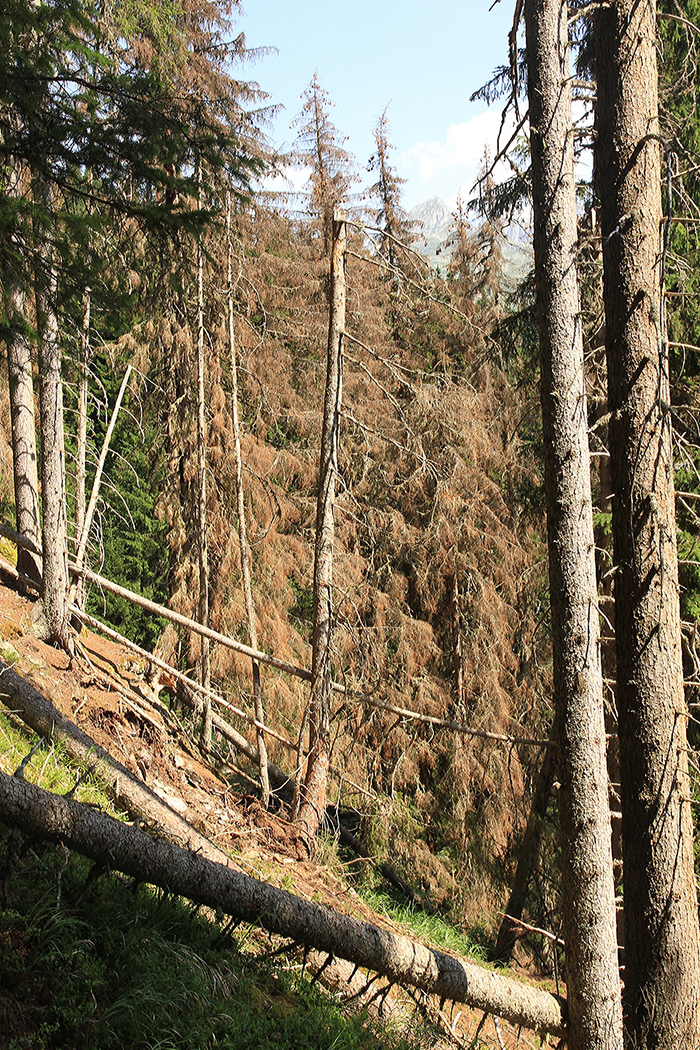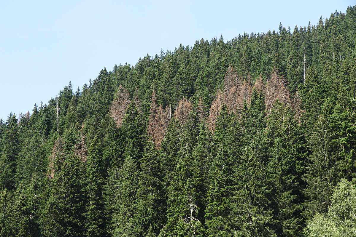 Der Buchdrucker (Ips typographus, Abb. 1) ist ein fester Bestandteil jedes Waldes mit Fichten und besiedelt normalerweise stark geschwächte oder frisch abgestorbene Bäume. Der laufende Klimawandel verändert das Umfeld sowohl für den Wirtsbaum Fichte als auch für den Buchdrucker. Steigende Temperaturen führen zu einem höheren Wasserbedarf. Mit der gleichzeitig prognostizierten Abnahme der Sommer-Niederschläge wird dies vermehrt zu Trockenstress der Wirtsbäume führen, was wiederum die Anfälligkeit der Fichten für Borkenkäferbefall erhöht