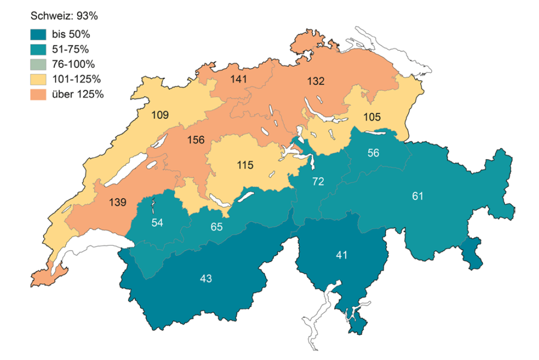 Bereits heute ist ein Rückgang der Fichte im Mittelland und den Voralpen festzustellen (Abb. 7), wahrscheinlich als Folge von Windwurf, Borkenkäfer und Bewirtschaftung. Im Alpenraum und auf der Alpen-Südseite nahm die Fichte hingegen zu. Der zu erwartende Trockenstress vor allem in den Tieflagen wird höchstwahrscheinlich auch in Zukunft zu erhöhter Mortalität, reduzierter Regeneration, langsamerem Wachstum und geringerer Konkurrenzfähigkeit der Fichte führen.