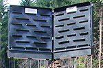 Die Schwärmaktivität wird für Buchdrucker, Kupferstecher und den Krummzähnigen Tannenborkenkäfer jeweils mittels Pheromonfallen dokumentiert. Es werden einheitlich die artspezifischen Pheromone Pheroprax© (Buchdrucker), Chalcoprax© (Kupferstecher) sowie Curviwit© (Krummzähniger Tannenborkenkäfer) in Theysohn-Einzelfallen verwendet, welche wöchentlich am selben Wochentag geleert werden. Je nach Art kommen i. d. R. 1-2 Fallen pro Standort zum Einsatz, welche frei auf einer Wildwiese oder Freifläche im Wirtsbaumbestand stehen (Abb. 3). Die Käfermenge wird direkt vor Ort bestimmt und an die FVA übermittelt. Andere Insektenarten, die sich eventuell in der Falle befinden (sogenannte Beifänge), werden an Ort und Stelle wieder freigelassen. Um durch die Lockwirkung der Falle keinen Stehendbefall zu verursachen, ist ein Mindestabstand von ca. 30 m zum nächsten Wirtsbaum geboten. Dieser Abstand empfiehlt sich auch zwischen den Fallen, um Interaktionen zu vermeiden. Details zur Methodik sind in [1] ausführlich beschrieben.