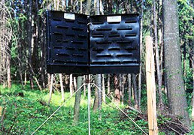 Als Fallen werden Theysohn Schlitzfallen - als Einzelfalle oder Fallenstern - verwendet, die mit den Lockstoffen Ipsowit oder Pheroprax Ampulle für den Buchdrucker, Chalcowit oder Chalcowit Ampulle für den Kupferstecher, Cembräwit für den Großen Lärchenborkenkäfer, Sexowit für den Großen 12-zähnigen Kiefernborkenkäfer und Acuwit für den 6-zähnigen Kiefernborkenkäfer beködert wurden. Die Kontrolle und Auswertung der Fallenfänge erfolgt wöchentlich.