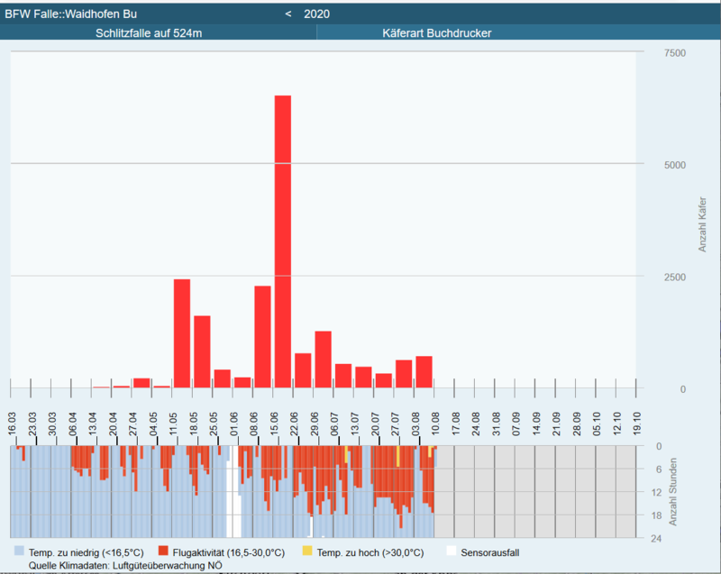 - die Ergebnisse in Diagrammen im Internet auf der Borkenkäfer-Webseite des BFW (www.borkenkaefer.at) "in real time" zur Verfügung gestellt,