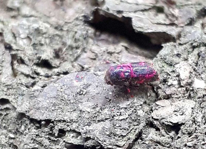Abb. 2: Markierter Buchdrucker auf der Borke eines Brutbaums. (Foto J. Hinze)