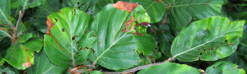 Blattnekrosen an Buche können bei feuchter Witterung auch durch den Pilz Apiognomonia errabundaverursacht oder verstärkt werden.