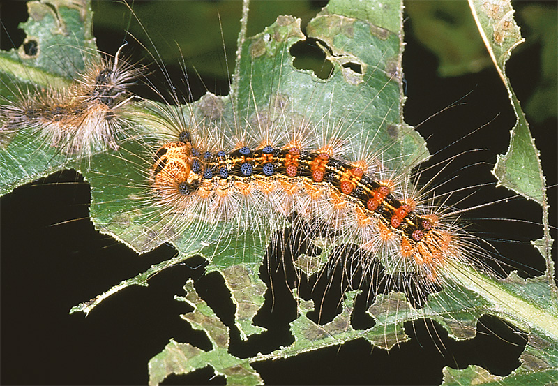 Abb. 2. Die Raupen des Schwammspinners haben einen grossen Appetit. Eine Raupe vertilgt während der Entwicklung 1 Quadratmeter Laub. Foto: Entomologie (WSL)