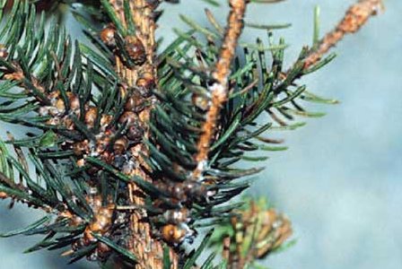 Abb. 2: Auf der Nadelunterseite können die saugenden Junglarven hohe Dichten erreichen. Foto: Waldschutz Schweiz
