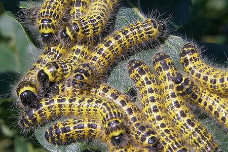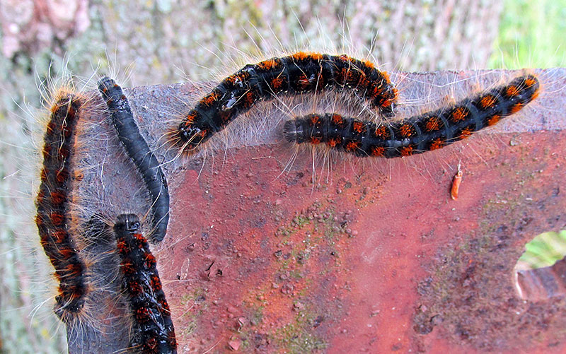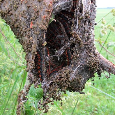 Ein Kandidat ist der Frühlings-Wollafter (Eriogaster lanestris). In den letzten Jahren häufen sich Meldungen von Wollafterbefall an Straßen- und Alleelinden aus Südbayern.
